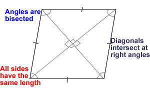 A rhombus is a parallelogram with 4 congruent or equal sides. A rhombus has the following rules: