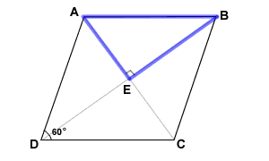 In triangle AEB, angle AEB is a right triangle because the diagonals of a rhombus are perpendicular to each other. Since the sum of the degree measures of the angles of a triangle is 180 degrees, we can say that the measure of angle A must be 30 degrees. How do we get 30?