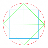 The diagram shows a square inscribed inside a circle inscribed inside a square. If the area of the larger square is 64 square units, what is the area of the smaller square?
