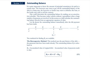 I'll show you the so called Retrospective method of determining the outstanding balance at the end of the nth payment period in just a few minutes.