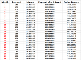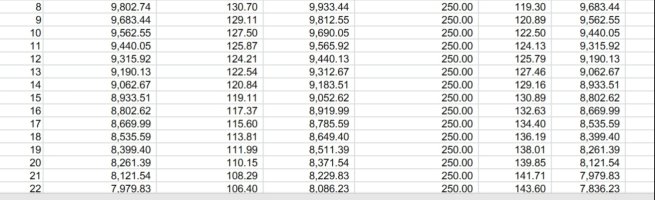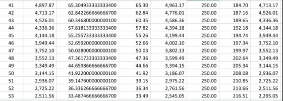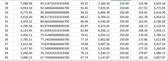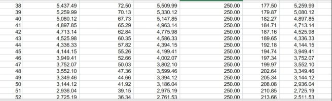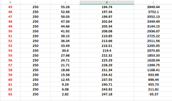 ... The negative sign in the \(\displaystyle 63^{\text{rd}}\) month confirms that a partial payment will be paid in that month. So, yes we have the same sheets, except mine is not organized as yours. Also, I have not shown all the months!