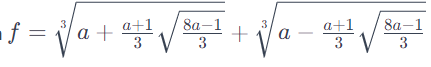 Then, [imath]\displaystyle x^3=a+\frac{a+1}{3}\sqrt{\frac{8a-1}{3}}[/imath] and [imath]\displaystyle y^3=a-\frac{a+1}{3}\sqrt{\frac{8a-1}{3}}[/imath]