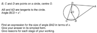 So \(m(\widehat{BD}=2x\) that means \(m(\angle BAD)=\frac{1}{2}\left(\widehat{BCD}-\widehat{BD}\right)\) Why and HOW?