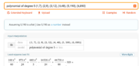 [MATH]7 = p + q + r + s + t + u;\\ 9 = p + 2q + 4r + 8s + 16t + 32u;\\ 12= p + 3q + 9r + 27s + 81t + 243u;\\ 48 = p + 4q + 16r + 64s + 256t + 1024u;\\ 190 = p + 5q + 25r + 125s + 625t + 3125u; \text { and}\\ 890 = p + 6q + 36r + 216s + 1296t + 7776u.[/MATH]That is a system of six linear equations in six unknowns. We learn in principle how to solve such systems with paper and pencil during first year algebra. Solving that by hand is boring but possible. Solving it matrix style is easy in excel.
