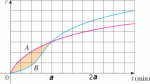 Two cars, A and B, start side by side and accelerate from rest. The figure shows the graphs of their velocity functions and a = 5.