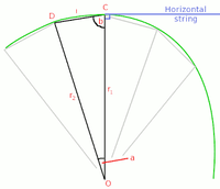 BUT, for this diagram, angle b must be under 90° otherwise the horizontal string would not initially make contact at point C. If D is higher than point C then the string would initially be at the height of D. This would mean the radius will be greater than desired at this string length. And I believe that angle b will be greater then 90° for your particular equation. Actually this can be seen by looking at your sketch in post#5 (consider the tangents to your sketch).