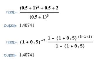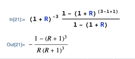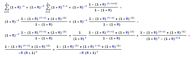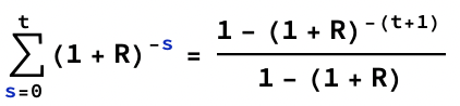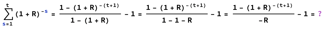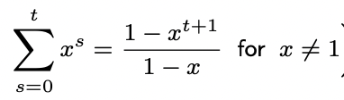 [math] \sum_{s=0}^t x^s = \dfrac{1 - x^{t+1}}{1 - x} \text { for } x \ne 0 \implies \\ \sum_{s=0}^{t=0} x^s = \dfrac{1 - x^{0+1}}{1 - x} = \dfrac{1 - x^1}{1 - x} = \dfrac{1 - x}{1 - x} = 1 \ne 0. [/math]