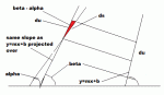 Look at the little red triangle with sides du and ds. \(\displaystyle \frac{\text{adjacent}}{\text{hypoteneuse}}=\frac{du}{ds}=cos(\beta-\alpha)\)