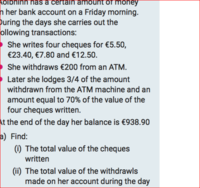 (ii) is the value of four cheques(i) plus 200 euros she withdraw from ATM. So it's 249.2 I guess.