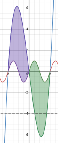 f(x)=sin(pi*x) and g(x)=2x^3-8x. R is the region bounded by the two functions. what is the volume of R rotating around y=-4?