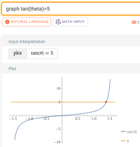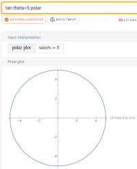 Does any one understand a reason why W/A shows the graph of tan θ = 5 as a circle of radius 5 with center at (0,0)?