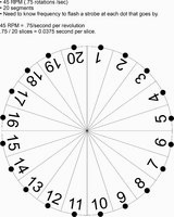 I'd like to get the frequency (in Hz) required for one full revolution 20 segments @ 18° per segment of the turntable.