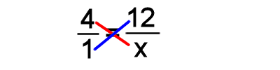 $$ \frac{4}{1}=\frac{12}{x}$$